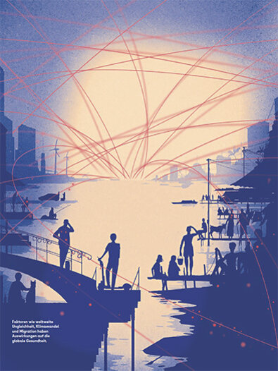 Nicht erst seit dem Corona-Ausbruch steht globale Gesundheit weit oben auf der internationalen politischen Agenda. In den 1980er Jahren erzeugte die HIV/Aids-Epidemie Sorge um die Gesundheit der Menschen weltweit, vor zehn Jahren war es der Ebola-Ausbruch in Westafrika. Zuletzt zeigte die Covid-19-Pandemie, dass weder Krankheiten noch gesundheitliche Herausforderungen an Ländergrenzen haltmachen. Der Corona-Ausbruch konfrontierte die Weltbevölkerung mit den Auswirkungen der Globalisierung auf Menschen, Gesellschaft und Umwelt. In der Dramatik des Augenblicks beschränkte sich globale Gesundheit auf Seuchenbekämpfung und Gesundheitsschutz. Eine derart eingeschränkte Sicht der Dinge wird aber weder den Anforderungen noch dem Anspruch an globale Gesundheit gerecht. Wer wirksam zur Verbesserung der Gesundheit der Weltbevölkerung beitragen will, müsste sämtliche politischen Entscheidungen auf ihre sozialen, ökologischen und vor allem gesundheitlichen Auswirkungen überprüfen. Nur so ist globale Gesundheit erreichbar.