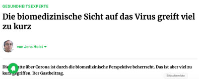 Und keiner stellt die Frage, ob die Menschen denn tatsächlich an oder nicht eher mit dem Virus sterben, weil niemand mehr etwas anderes testet als Covid-19. Die Debatte über die Corona-Pandemie ist ausschließlich durch die biomedizinische Perspektive beherrscht.